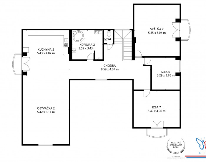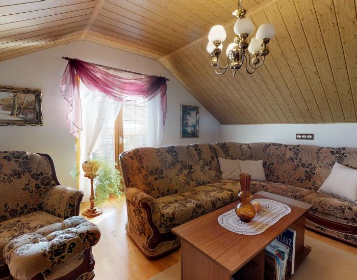 • poschodie – 194 m2 - priestranná obývacia izba prepojená s kuchyňou so vstavanými spotrebičmi, dve samostatné nepriechodné izby, kúpeľňa s WC.