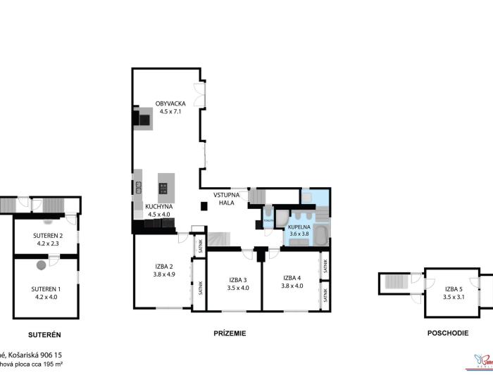 Pozemok - 1227 m2, Zastavaná plocha domu 150 m2, Obytná plocha 376 m2