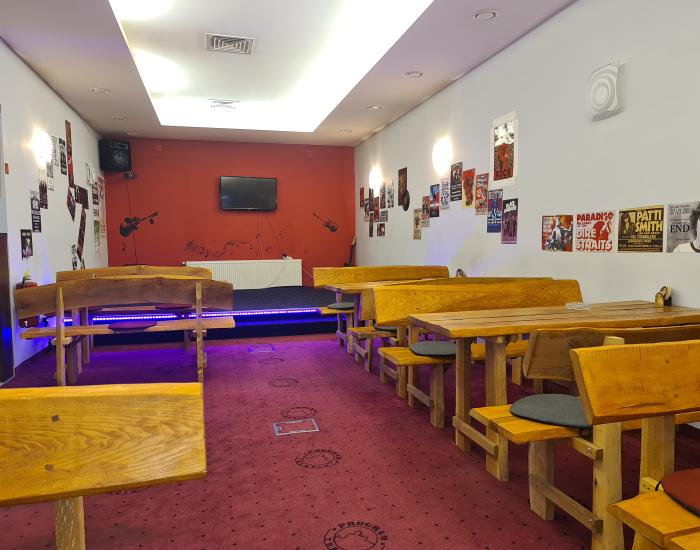 - 3 miestnosti na sedenie, v jednej pódium na vystupovanie