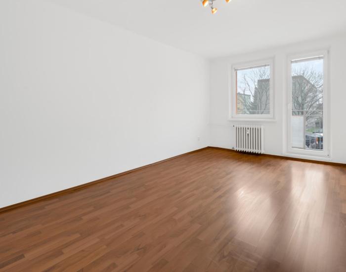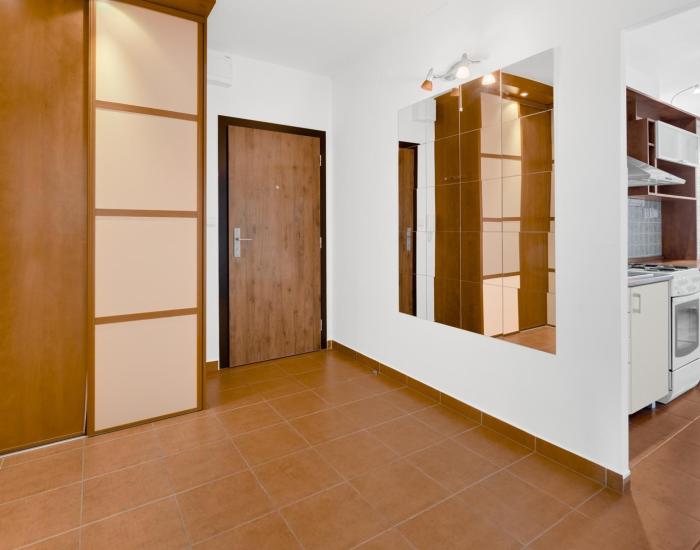 Vstupnú časť bytu tvorí priestranná predsieň so vstavaným šatníkom s posuvnými dverami. Po ľave strane je L-ková kuchyňa so vstupom do kúpeľne so sprchovým kútom a toaletou. Do priestrannej obývačky sa vstupuje z predsiene aj z kuchyne, čo umožňuje v prípade potreby predelenie na dve samostatné menšie izbičky. Detská izba a spálňa, s výstupom na loggiu, sú samostatné obytné miestnosti. V predsieni, v kuchyni (čiastočne) a v kúpeľni je keramická dlažba. V obytných miestnostiach je laminátová podlaha.