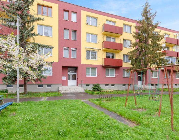 Zateplený bytový dom, nová strecha, nový vchod s vrátnikom, schránky.