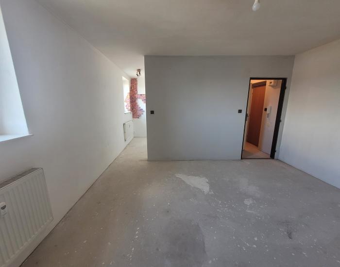 V miestnostiach nie je žiadna podlahová krytina. Byt je bez kuchynskej linky.