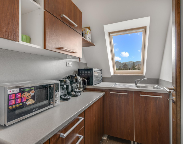 Na 1. a 2. poschodí sú kompletne vybavené apartmány a izby s mini kúpeľňami.