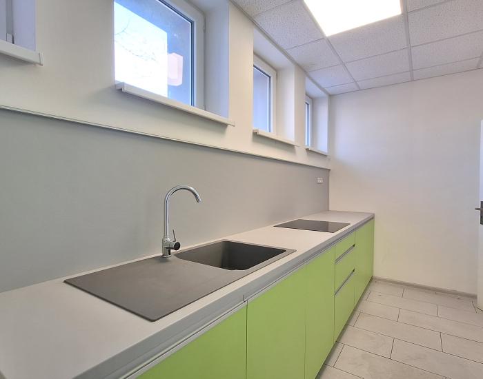 voľné kancelárie: 54 m2 (2 samostatné kancelárie, kuchynka, sociálne zariadenie), 48 m2 (1 kancelária), 96 m2 (2 prechodné kancelárie, 3 miestnosti bez okna, kuchynka, sociálne zariadenie)