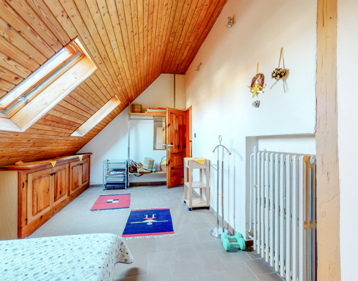 Veľká, priestranná obývacia izba s kuchyňou a s krbom, s otvoreným priestorom do zvýšeného podkrovia - do spálne, 1 samostatná izba, kúpeľňa, WC.
