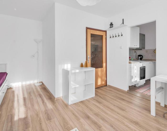 vstupná predsieň, samostatná 1 izba , plnevybavená a zariadená kuchyňa, kúpeľňa a WC.