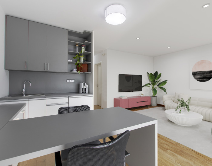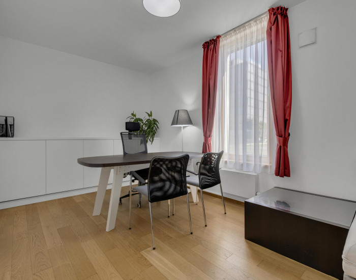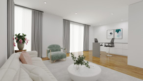 Byt bol doposiaľ využívaný ako kancelária, no majiteľ nemá problém ho upraviť späť na pôvodné bývanie. Pre lepšiu predstavu je k dispozícii vizualizácia obývačky.