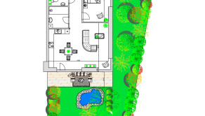 Nachádza sa tu automatická závlaha, rozvod kvapkovej závlahy a malá bránka do átria.