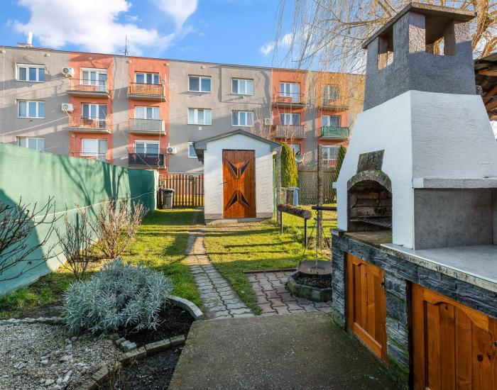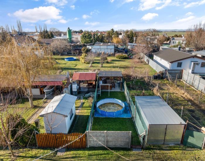 Možnosť využívať záhradu za bytovým domom 4,20 x 18 m = 75,60 m2. Na záhrade k dispozícii studňa, elektrika, altánok s posedením, gril, záhradný domček.