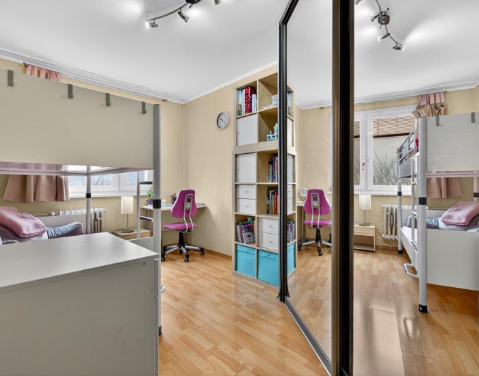 Vo všetkých izbách je plávajúca podlaha, v kuchyni, hale, kúpeľni, vo WC a na logii je dlažba. Okrem obývačky sa vo všetkých izbách nachádzajú priestranné skrine s posuvnými dverami.