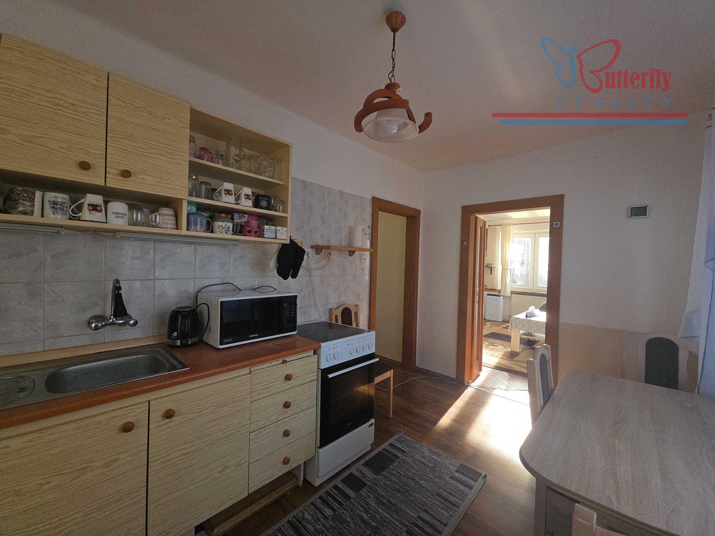 Byt je čiastočne zrekonštruovaný, čo vám umožní si ho prispôsobiť podľa vlastných predstáv. Dispozícia bytu je veľmi praktická: vstupná chodba vedie do komory, kúpeľne a kuchyne. Z kuchyne sa dostanete do obývacej izby, ktorá je priechodná do spálne. Plastové okná zabezpečujú dobrú izoláciu a svetlosť v interiéri. Podlahy sú kombinované: v kuchyni a chodbe je plávajúca podlaha, v kúpeľni dlažba a v izbách sú zachovalé drevené parkety, ktoré dodávajú bytu príjemný vzhľad. V obývacej izbe sa nachádza krb, ktorý vytvára útulnú atmosféru a je ideálny na zimné večery.