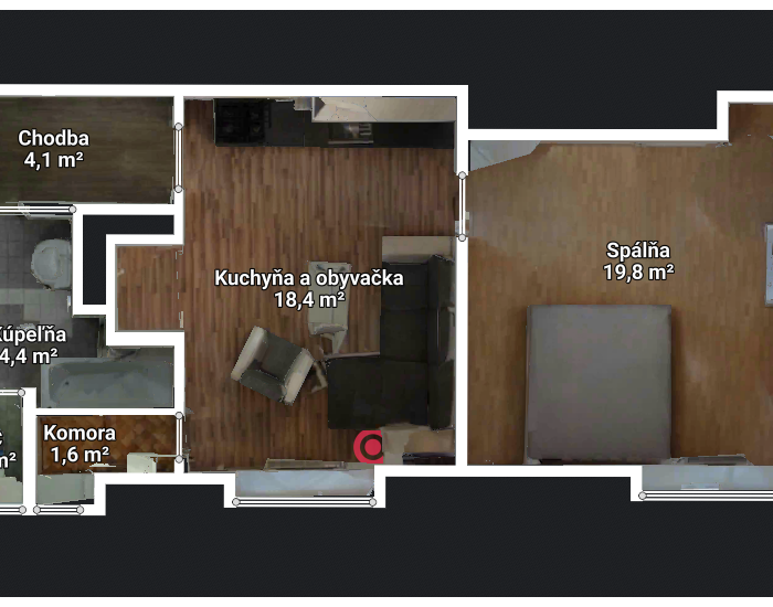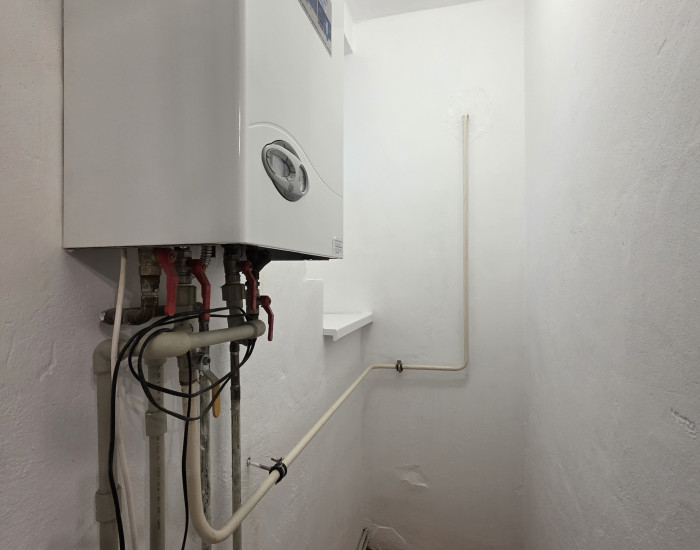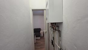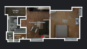 Dispozícia a vybavenie: Pri vstupe do bytu vás privíta vstupná chodba, z ktorej sa vchádza do kúpeľne spojenej s toaletou. Srdcom bytu je obývacia izba prepojená s kuchynským kútom, ktorá vytvára otvorený a vzdušný priestor. Z obývacej časti je praktický prechod do technickej miestnosti, kde je umiestnený vlastný plynový kotol – veľká výhoda pre kontrolu nad nákladmi na kúrenie.