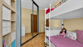 Vo všetkých izbách je plávajúca podlaha, v kuchyni, hale, kúpeľni, vo WC a na logii je dlažba. Okrem obývačky sa vo všetkých izbách nachádzajú priestranné skrine s posuvnými dverami.