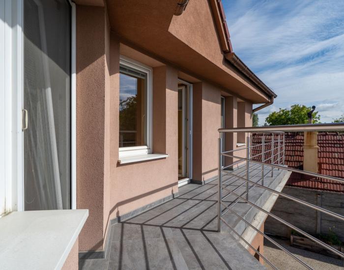- Poschodie: 3 samostatné izby so šatníkmi, kúpeľňa, samostatné WC, balkón z každej izby