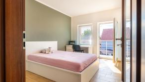 - Poschodie: 3 samostatné izby so šatníkmi, kúpeľňa, samostatné WC, balkón z každej izby