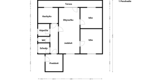 Na poschodí sa rozprestiera hlavná obytná časť, ktorá je navrhnutá pre maximálny komfort a svetlosť. Po vstupe cez verandu vás privíta chodba so schodiskom, ktorá ústi do samostatného WC a kúpeľne so sprchovým kútom. Srdcom poschodia je kuchyňa, priestranná obývacia izba prepojená s jedálenským kútom, z ktorej je priamy prechod na terasu, ideálnu pre rannú kávu alebo večerné posedenia. Túto časť dopĺňajú dve útulné izby, poskytujúce dostatok súkromia pre všetkých členov rodiny.